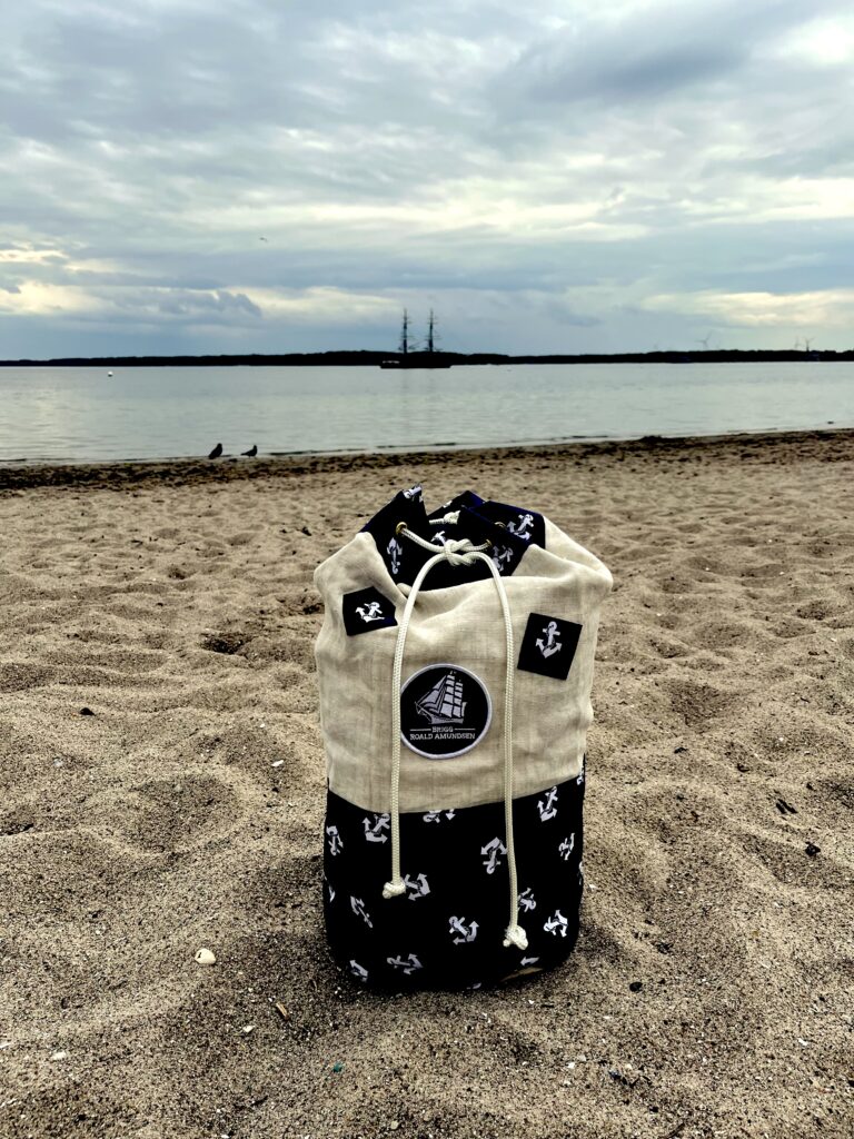 … aus über 100 Jahre altem Leinen in sehr aufwendiger liebevoller Handarbeit gefertigt – ca. 48 cm hoch bei Durchmesser von 25 cm; inklusive Innenfutter, Innentasche mit Reißverschluss sowie gepolstertem Tragegurt. Preis: 45 € zzgl. Versandkosten || Bestellung: Schiffsbüro