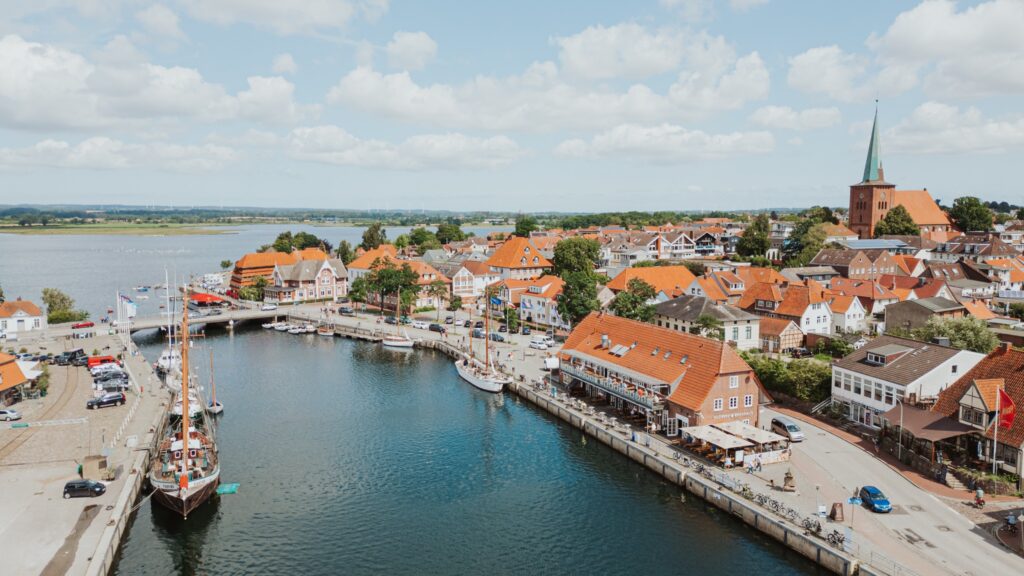 Der fjordähnliche Hafen von Neustadt in Holstein, gesäumt von Traditionsseglern, Cafés und Backsteinarchitektur, bietet einen wunderschönen Abschluss des Törns und echtes Ostsee-Hafenfeeling.